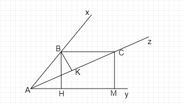 Vì AB = AC (do BC // Ay), nên ta có AK = AB.