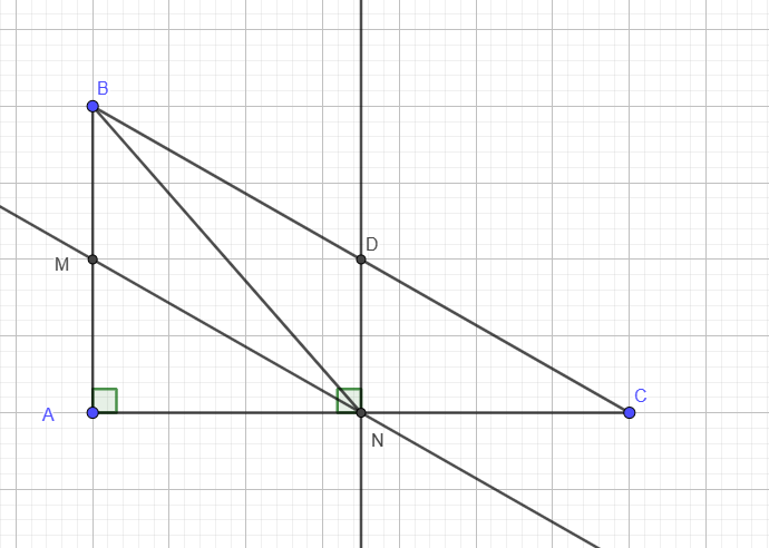 b) Có $\displaystyle MN//BC$ mà $\displaystyle N$ là trung điểm $\displaystyle AC\Rightarrow M$ là trung điểm $\displaystyle AB$