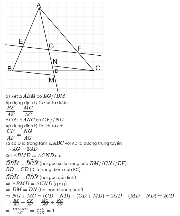 a) Tam giác ABM có $\displaystyle EG//BM\ ( do\ EF//BM)$