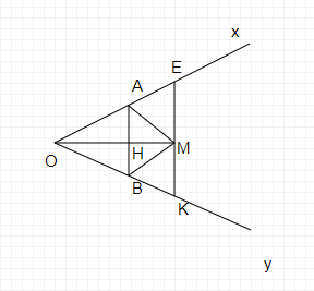 \widehat{MOK} =\widehat{MOE}( \vartriangle OAH=\vartriangle OBH)\\