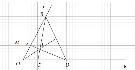 ⟹$\displaystyle \widehat{AOI} =\widehat{COI}$ ⟹OI là đường phân giác của tam giác OBD