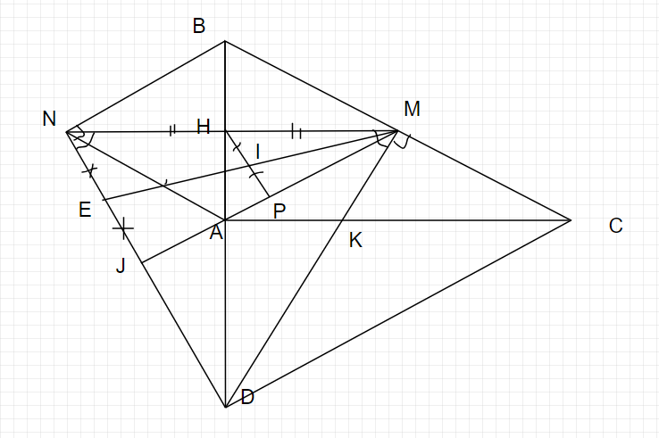 Vì I là trung điểm của HP, nên IE cắt NJ thành hai đoạn bằng nhau.