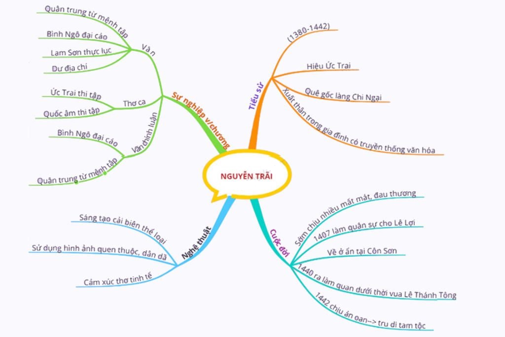 Lưu ý rằng sơ đồ tư duy này chỉ mang tính chất tương đối và không thể đại diện cho toàn bộ sự nghiệp sáng tác của Nguyễn Trãi. Để hiểu rõ hơn về tác phẩm và sự nghiệp của Nguyễn Trãi, bạn có thể tham khảo các nguồn tài liệu tham khảo khác hoặc sách giáo trình ngữ văn lớp 10 tập 2.