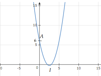 Tọa độ đỉnh I: $\displaystyle x=\frac{-( -5)}{2.} =\frac{5}{2} \Longrightarrow y\left(\frac{5}{2}\right) =\left(\frac{5}{2}\right)^{2} -5.\frac{5}{2} +6=-\frac{1}{4}$