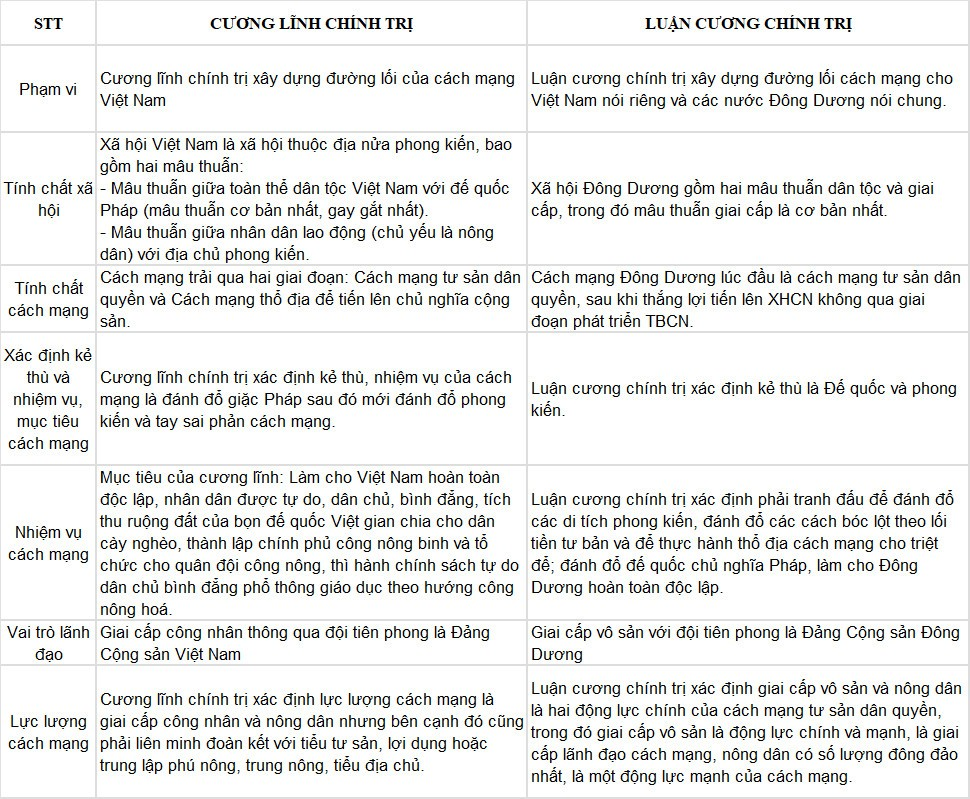 So sánh Cương lĩnh chính trị và Luận cương chính trị: