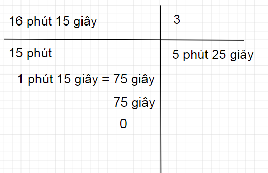 Để giải quyết bài toán này, chúng ta có thể sử dụng phép chia để tính số giây trong 16 phút 15 giây chia cho 3.