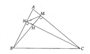 $\displaystyle \vartriangle ABC$ có $\displaystyle BM,\ CN\ $là đường cao ⟹ $\displaystyle \widehat{HNA} \ =\ \widehat{HMA} \ =\ \widehat{BNC} \ =\ \widehat{BMC} \ =\ 90^{0}$