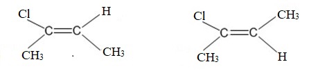 CH3 – CCl = CH – CH3 có đồng phân hình học: