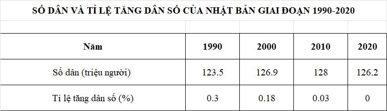 - Giai đoạn năm 1990 - 2020, dân số Nhật Bản có nhiều biến động.