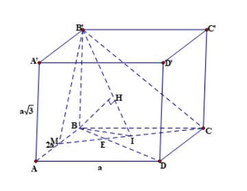: Cho hình hộp chữ nhật ABCD.A'B'C'D' đáy là hình chữ nhật có AB = 2a, AD = 6a. Gọi M là trung điểm của AD, biết khoảng cách từ C đến mặt phẳng (A'BM) bằng 12/a7. Thể tích khối hộp ABCD.A'B'C'D' là