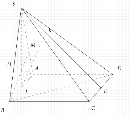 Mà (SAB)$\displaystyle \bot $(ABCD)$\displaystyle \Rightarrow $SI$\displaystyle \bot $(ABCD)
