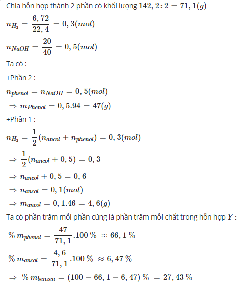 & n_{\mathrm{H}_2}=\frac{1}{2}\left(n_{\text {ancol }}+n_{\text {phenol }}\right)=0,3(\mathrm{~mol}) \\