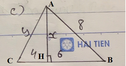 c) Xét $\displaystyle \vartriangle $AHB vuông tại H có: