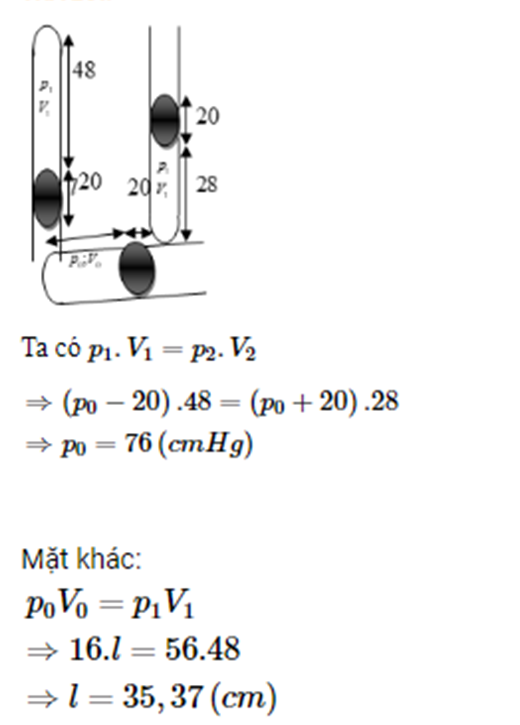 Để giải bài toán này, chúng ta sẽ sử dụng nguyên lý cân bằng áp suất trong ống thủy tinh.