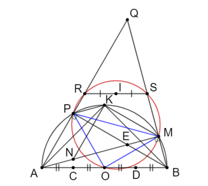 Suy ra: $PO \perp ON$ hay $PO$ là tiếp tuyến của đường tròn đường kính $NQ$.