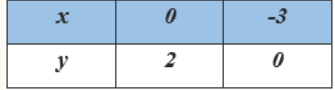 Đồ thị của hàm số $\displaystyle y=\frac{2}{3} x+2$ là đường thẳng đi qua hai điểm A(0;2) và B(-3;0)