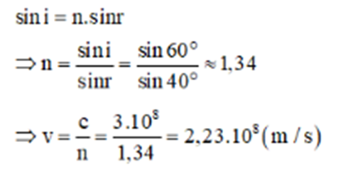 Với \( i = 60^\circ \) và \( r = 40^\circ \):