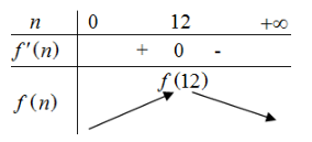Người ta thấy rằng nếu thả số cá trong khoảng (a; b) trên một đơn vị diện tích của mặt hồ thì tổng số gam tăng lên. $\displaystyle \Leftrightarrow f( n)$ đồng biến $\displaystyle \Leftrightarrow f'( n) >0$