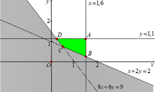 $\displaystyle 0\ \leq \ x\ \leq \ 1,6;\ 0\ \leq \ y\ \leq \ 1,1$ (1)