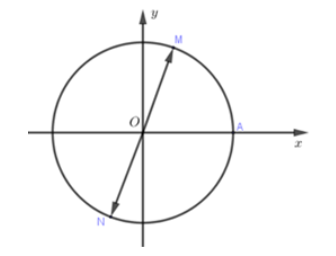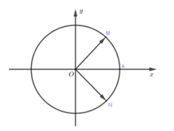 - Vì điểm N là điểm đối xứng của điểm M qua trục Oy, nên góc giữa hai bán kính OA và ON sẽ là \(180^\circ - 60^\circ = 120^\circ\) hoặc \(-180^\circ + 60^\circ = -120^\circ\).