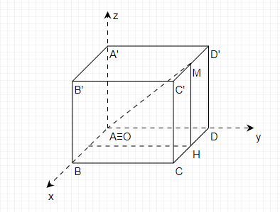 Cuối cùng, ta tìm tọa độ của điểm M, trung điểm của cạnh C'D':