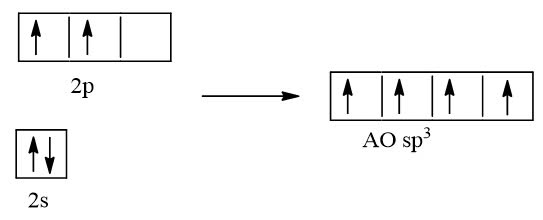 1 AO 2s tổ hợp với 3 AO 2p tạo 4 AO lai hóa sp3