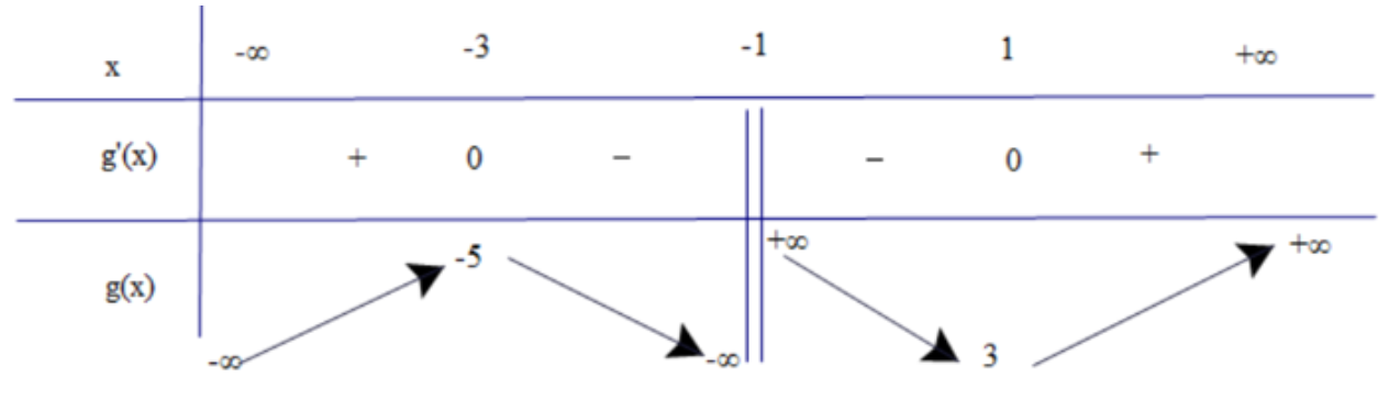 Có $\mathrm{g}^{\prime}(\mathrm{x})=0$ => $\mathrm{x}^2+2 \mathrm{x}-3=0$ => $\mathrm{x}=1$ hoặc $\mathrm{x}=-3$.