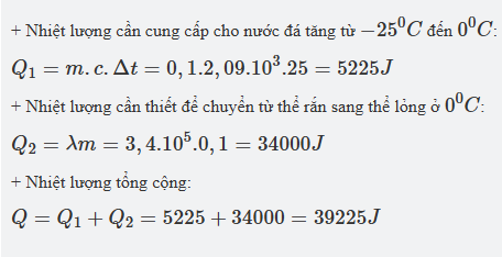 * Làm nóng chảy nước đá ở 0°C: Trong giai đoạn này, chúng ta sử dụng công thức Q = λ * m.