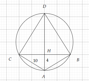 \Longrightarrow AD=\frac{AC^{2}}{AH} =\frac{10^{2}}{4} =25\ ( cm)
