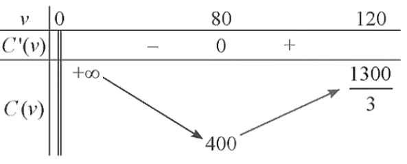 $\displaystyle C( v) \ =\ \frac{16\ 000}{v} \ +\ \frac{5}{2} v,\ 0\ < \ v\ \leqslant \ 120$