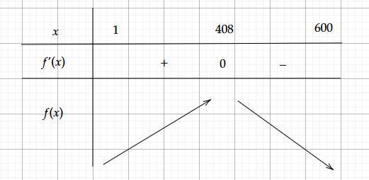 Ta thấy doanh nghiệp cần sản xuất 408 sản phẩm để lợi nhuận thu được là lớn nhất