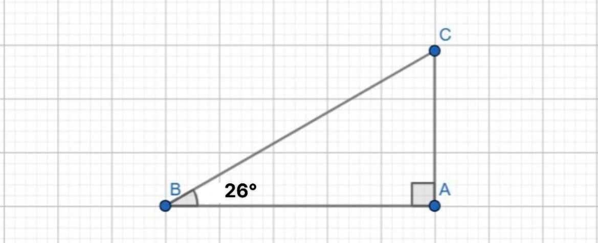 \Rightarrow B C=20(\mathrm{~km}), \widehat{A B C}=26^{\circ}