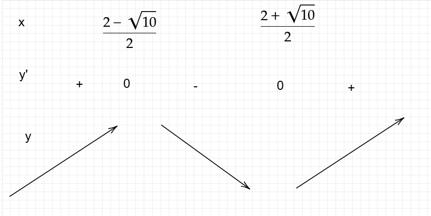 \rightarrow x\ \ =\frac{2\pm \sqrt{10}}{2}