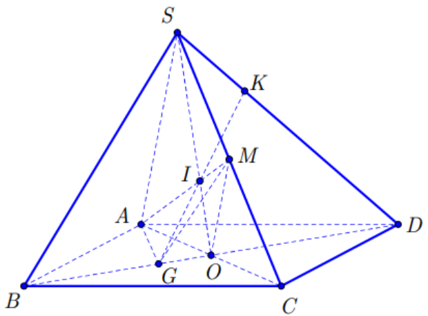 Vì MO là đường trung bình của tam giác SAC nên $\displaystyle MO\ //\ SA$, mà $\displaystyle SA\subset ( SAB)$ nên $\displaystyle MO\ //\ ( SAB)$.