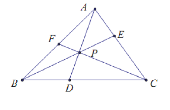 Cho tam giác $\mathrm{ABC} . \mathrm{D}, \mathrm{E}, \mathrm{F}$ lần lượt nằm trên các cạnh $\mathrm{BC}, \mathrm{AC}, \mathrm{AB}$.