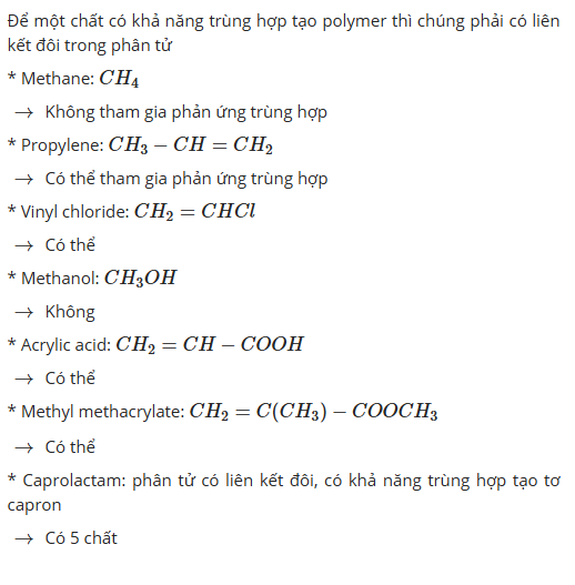 Có 5 chất có khả năng trùng hợp tạo polymer là: