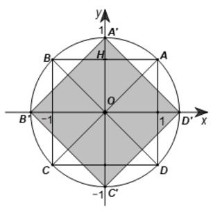 Tương tự ta chứng minh được phép quay ngược chiều $\displaystyle 45^{o}$ tâm $\displaystyle O$ biến các điểm $\displaystyle A,B,C,D$ lần lượt thành các điểm $\displaystyle A'\left( 0;\sqrt{2}\right) ,\ B'\left( -\sqrt{2} ;0\right) ,\ C'\left( 0;-\sqrt{2}\right) ,\ D'\left(\sqrt{2} ;0\right)$