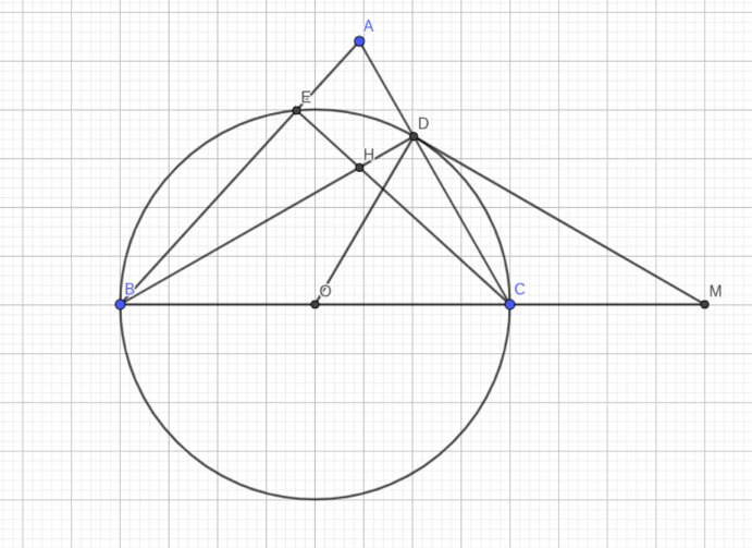 $\Rightarrow D M$ là tiếp tuyến của $(O)$