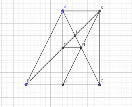 $\Rightarrow A H \cap B K=O$ là trung điểm mỗi đường