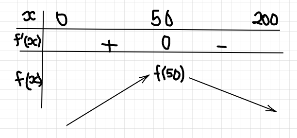 \Longrightarrow f'( x) =-200x+10000=0\\