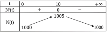Từ bảng biến thiên, ta thấy số lượng vi khuẩn lớn nhất kể từ khi thực hiện cấy vi khuẩn vào môi trường dinh dưỡng là 1005 con