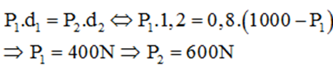 - Khoảng cách từ vai người thứ hai đến điểm treo: \( d_2 = L - d_1 = 2 - 1.2 = 0.8 \, \text{m} \)