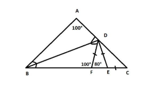 CM được tam giáC BDN=BDA( g-c-g) => AD=DN , góc DNB=DAB=100* => DNC=80* = DMB=> DN=DM =DA=MC(Tự chứng minh) =>đpcm
