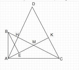 Do đó $\displaystyle \vartriangle BEM=\vartriangle CKM$ (cạnh huyền + góc nhọn)