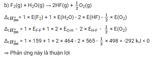 - Nếu $\Delta_rH^0_{298}$ là âm, phản ứng là thuận lợi.