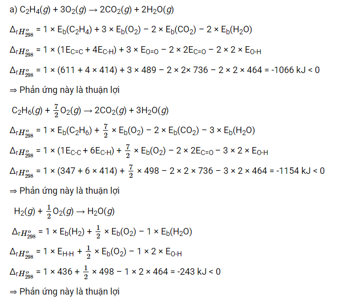 Sau khi thực hiện các tính toán cụ thể, bạn có thể đưa ra các giá trị của $\Delta_rH^0_{298}$ cho từng phản ứng và đưa ra dự đoán về độ thuận lợi của các phản ứng này.