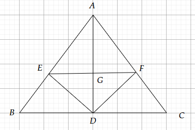 - \(DE = DF\) (chứng minh ở phần b)