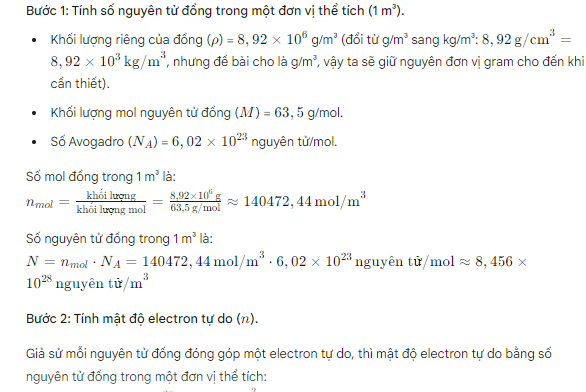 Giả sử mỗi nguyên tử đồng cho ra một electron tự do: