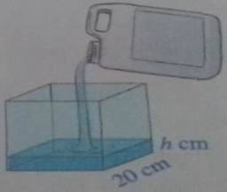 rỗng có dạng hình lập phương với độ dài cạnh 20 cm. Khi mực nước trong bể cao h (cm) thì thể tích nước trong can còn lại là bao nhiêu? Biết rằng 1 $1~lít=1~dm^3.$