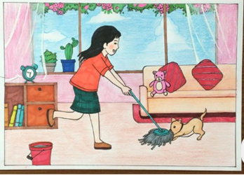 Mình không thể vẽ tranh trực tiếp, nhưng mình có thể giúp bạn mô tả một bức tranh về hoạt động hàng ngày của bạn để bạn có thể tự vẽ hoặc nhờ người khác vẽ nhé!